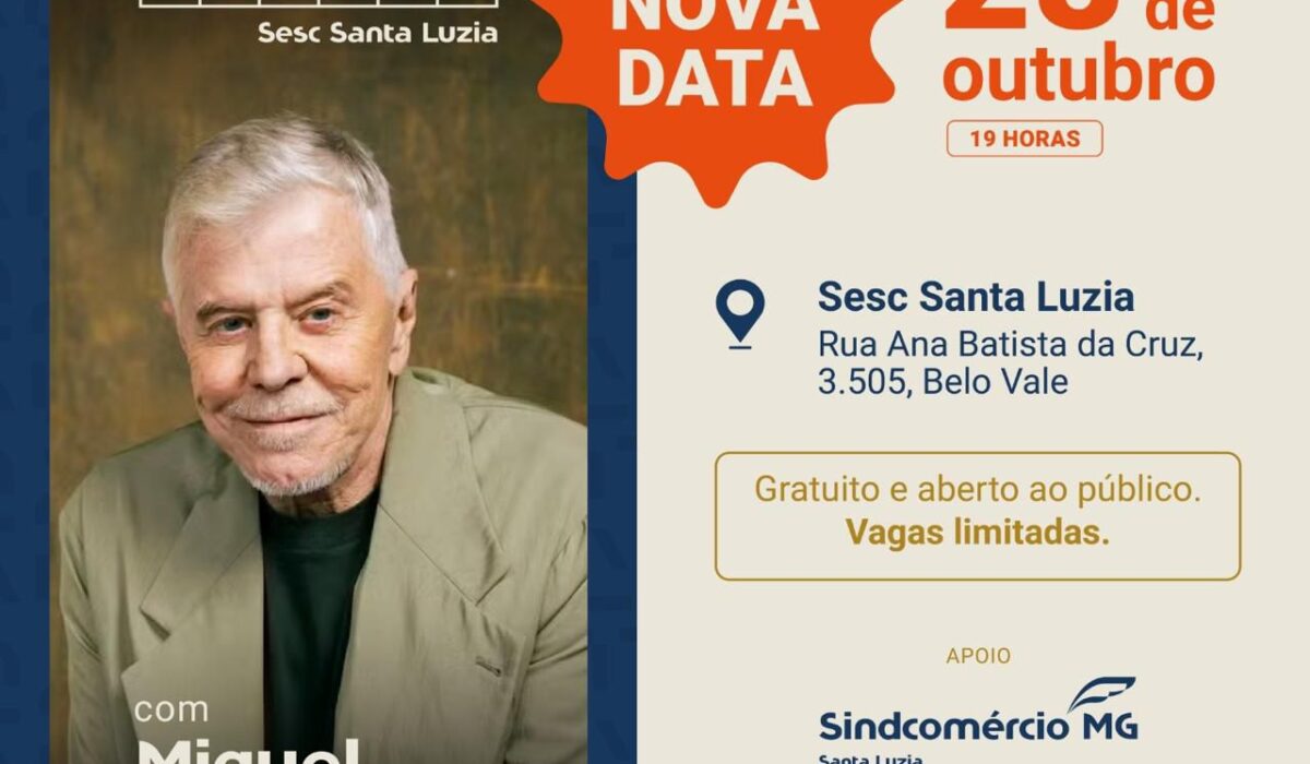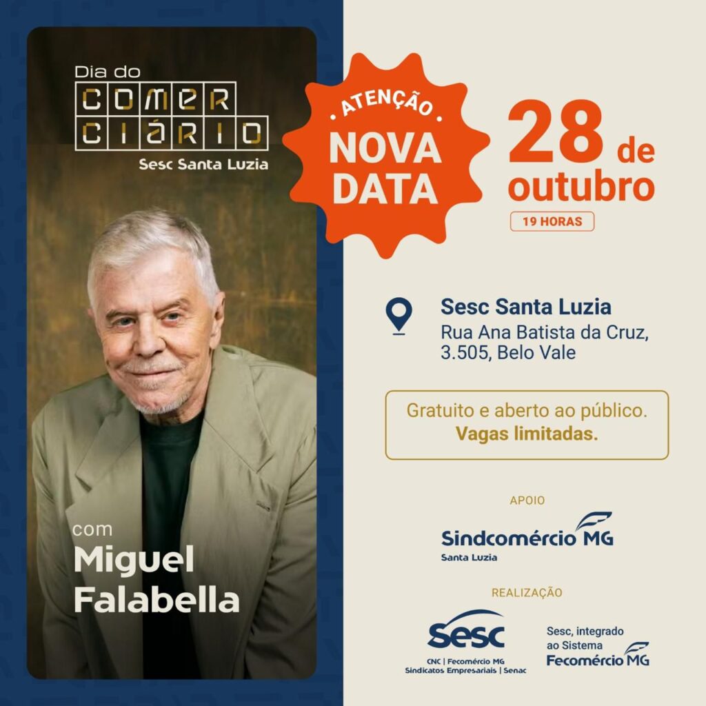 O grande encontro com Miguel Falabella acontece nesta terça feira , 28 de outubro, às 19h, no Sesc Santa Luzia!